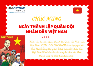 Thay mặt Công ty TNHH Kiểm toán CPA VIETNAM – Thành viên Hãng kiểm toán quốc tế INPACT, tôi xin bày tỏ lòng cảm ơn sâu sắc nhất tới Quý khách hàng và các đối tác, những người đã luôn tin tưởng hợp tác và sử dụng dịch vụ của chúng tôi. Sự tin tưởng của quý vị đã góp phần to lớn trong việc quyết định sự phát triển và thành công của Công ty trong thời gian qua […]