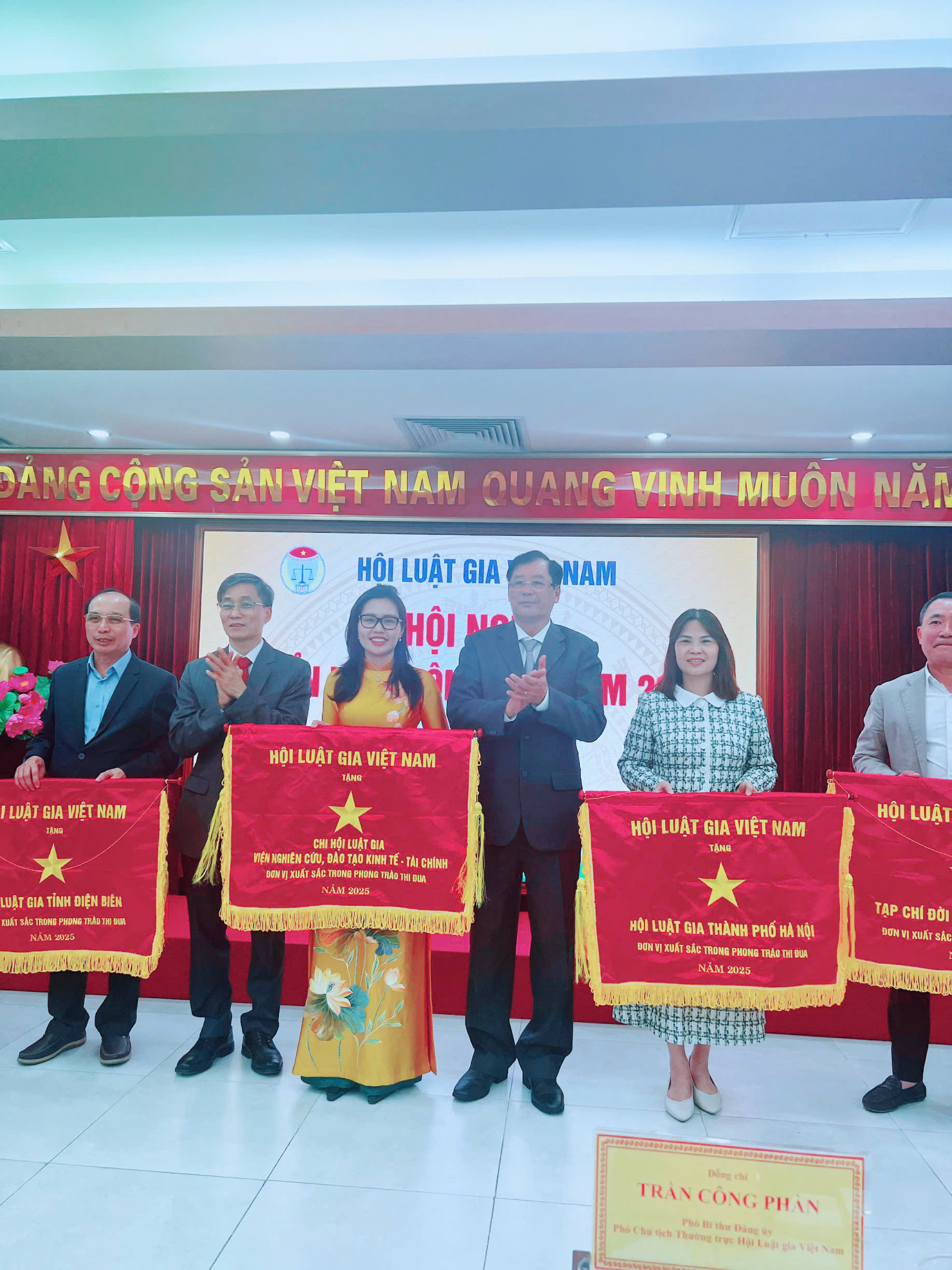 Nhân dịp này, Hội Luật gia Việt Nam đã tổ chức khen thưởng cho các tập thể, cá nhân có thành tích xuất sắc tiêu biểu trong phong trào thi đua năm 2025. Chi hội Luật gia Viện Nghiên cứu, đào tạo, kinh tế - tài chính vinh dự là một trong những tập thể được trao tặng Cờ thi đua của Hội Luật gia Việt Nam, ghi nhận những đóng góp tích cực, hiệu quả trong công tác chuyên môn, xây dựng tổ chức Hội và các hoạt động nghiên cứu, đào tạo, tư vấn pháp luật gắn với lĩnh vực kinh tế – tài chính.