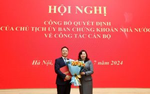 Ngày 29/7/2024, Ủy ban Chứng khoán Nhà nước tổ chức Hội nghị công bố quyết định của Chủ tịch Ủy ban Chứng khoán Nhà nước về công tác cán bộ đối với một số lãnh đạo đơn vị thuộc Ủy ban. Chủ tịch Ủy ban Chứng khoán Nhà nước Vũ Thị Chân Phương chủ trì Hội nghị.