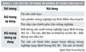 Việc ghi nhận tài sản sinh học và sản phẩm nông nghiệp tại Việt Nam đang được áp dụng theo VAS 3 – tài sản cố định hữu hình và VAS 2 – Hàng tồn kho dựa trên nguyên tắc giá gốc. Trong khi, theo Chuẩn mực kế toán quốc tế 41 – IAS 41, việc đo lường các tài sản sinh học và sản phẩm nông nghiệp dựa trên cơ sở giá trị hợp lý trừ đi các chi phí ước tính để bán.
