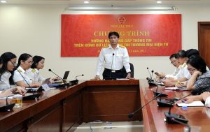 Tổng cục Thuế tổ chức hội nghị trực tuyến hướng dẫn việc cung cấp thông tin trên Cổng dữ liệu thông tin thương mại điện tử (TMĐT) cho các tổ chức là chủ sở hữu Sàn giao dịch TMĐT. Phó Tổng cục trưởng Tổng cục Thuế Đặng Ngọc Minh chủ trì hội nghị.