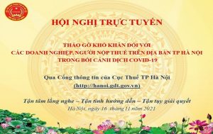 Tiếp nối thành công của Chương trình hỗ trợ trực tuyến giải đáp chính sách thuế và các thủ tục hành chính thuế trên website của Cục Thuế hồi tháng 7/2021, Cục Thuế TP Hà Nội sẽ tổ chức Chương trình trực tuyến giải đáp chính sách thuế và các thủ tục hành chính thuế trên website với chủ đề “Cục Thuế TP Hà Nội tháo gỡ khó khăn đối với Doanh nghiệp, người nộp thuế trên địa bàn TP Hà Nội trong bối cảnh dich Covid-19”.