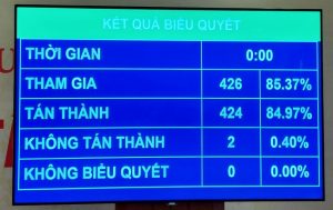 Với 424/426 đại biểu tham gia biểu quyết tán thành, chiều 1/11, Quốc hội đã thông qua Nghị quyết về chính sách tài khóa, tiền tệ hỗ trợ Chương trình phục hồi và phát triển kinh tế-xã hội.