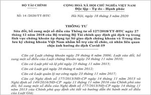 Bộ Tài chính vừa ban hành Thông tư số 14/2020/TT-BTC ngày 18/3/2020, trong đó giảm giá và miễn hoàn toàn không thu đối với 15 loại dịch vụ chứng khoán nhằm hỗ trợ thị trường chứng khoán trước ảnh hưởng của dịch Covid-19.