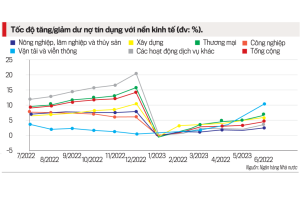 Sau khi có sự hồi phục tích cực trong tháng 6, tín dụng bất ngờ chững lại, thậm chí tăng trưởng âm trong tháng 7 và thấp hơn đáng kể so với cùng thời điểm năm 2022 (9,54%). Con số trên thực sự đáng báo động vì đó là lăng kính phản ánh quá trình phục hồi của nền kinh tế và mục tiêu tăng trưởng kinh tế cho cả năm....