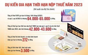 Bộ Tài chính đã hoàn thiện và gửi Bộ Tư pháp thẩm định nghị định gia hạn thời hạn nộp thuế giá trị gia tăng, thuế thu nhập doanh nghiệp, thuế thu nhập cá nhân và tiền thuê đất năm 2023. Dự kiến tổng số thuế và tiền thuê đất được gia hạn khoảng trên 100 nghìn tỷ đồng.