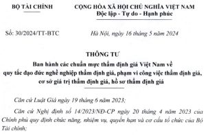 Đã có Thông tư 30/2024/TT-BTC về 04 chuẩn mực thẩm định giá Việt Nam từ ngày 01/7/2024