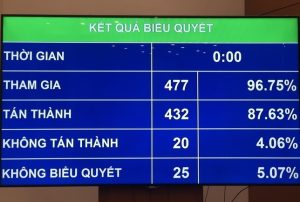 Tại phiên bế mạc kỳ họp bất thường sáng 18/01/2024, Quốc hội đã chính thức thông qua dự án Luật Đất đai sửa đổi, với 432 đại biểu tán thành, đạt tỷ lệ 87,63%.