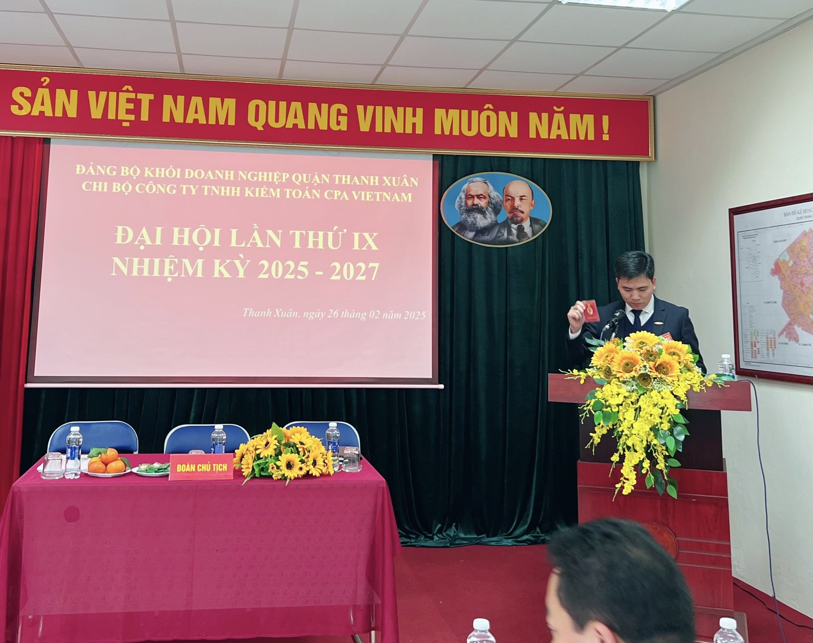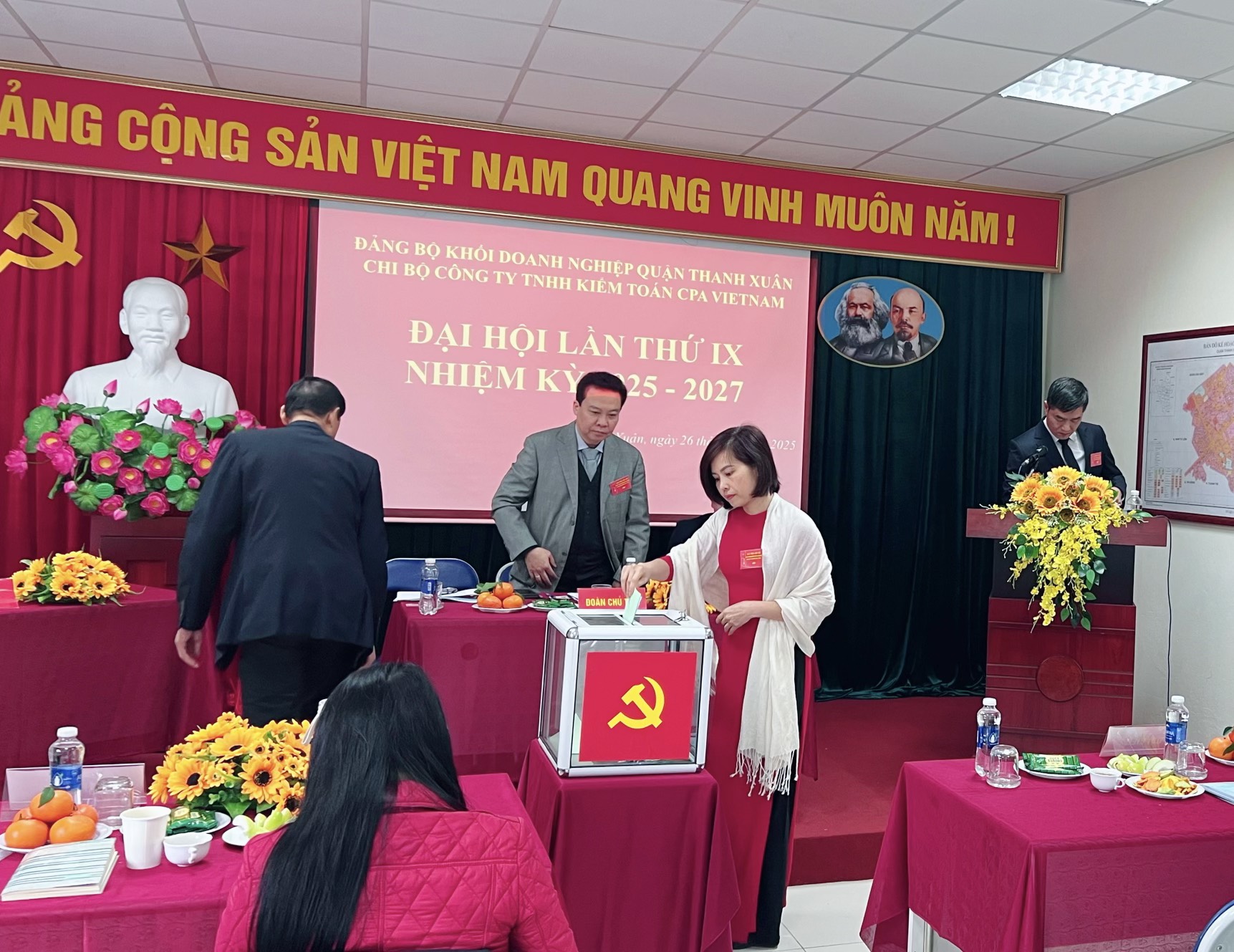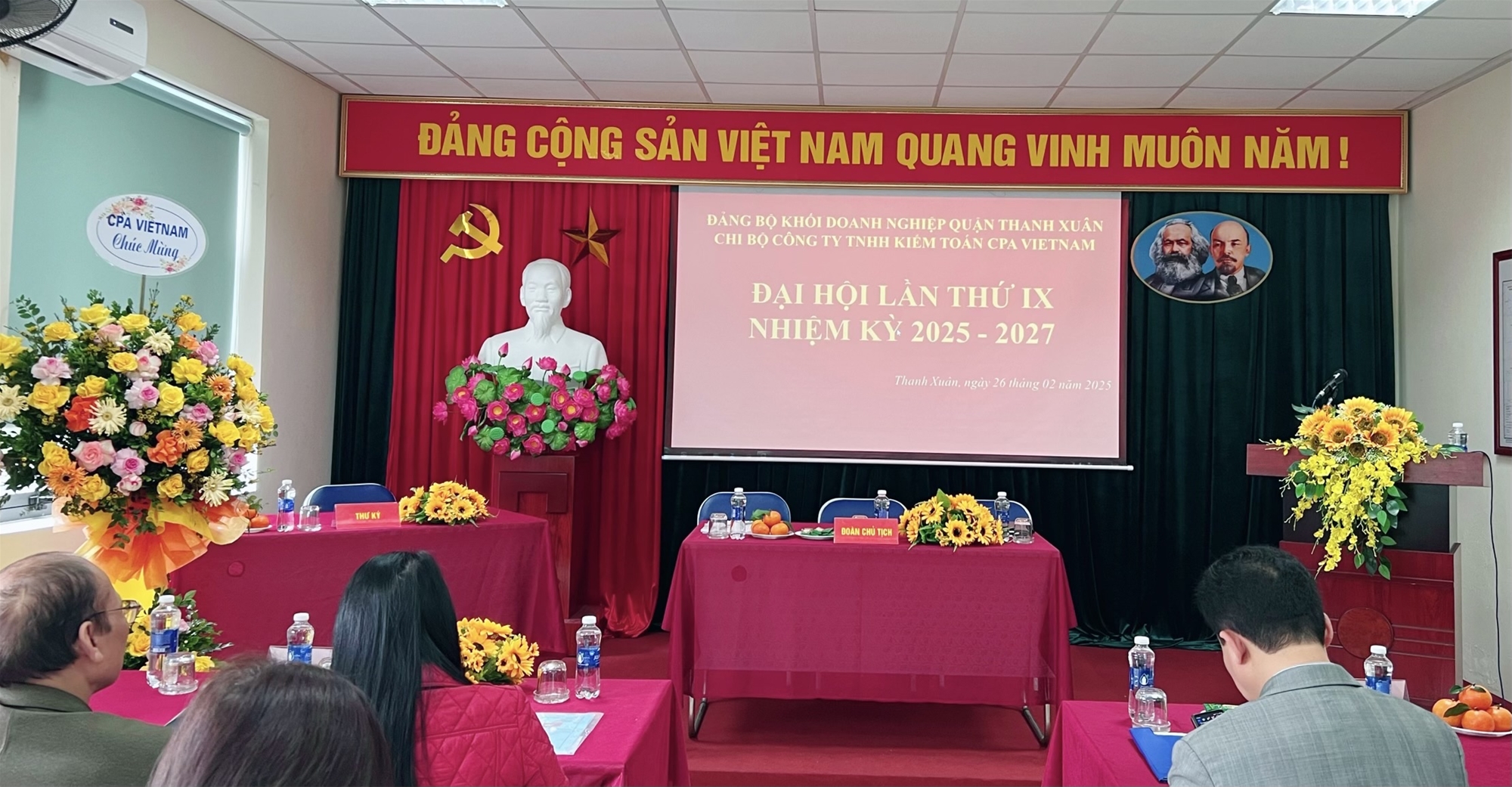 Ngày 26/02/2025, Chi bộ Công ty TNHH Kiểm toán CPA VIETNAM đã tổ chức thành công Đại hội Chi bộ khóa IX (nhiệm kỳ 2025 – 2027), theo Kế hoạch số 974 ngày 08/08/2024 của Đảng ủy Khối Doanh nghiệp quận Thanh Xuân về tổ chức Đại hội Chi bộ trực thuộc, tiến tới Đại hội Đại biểu Đảng bộ Khối Doanh nghiệp quận Thanh Xuân lần thứ IV, nhiệm kỳ 2025 – 2030.