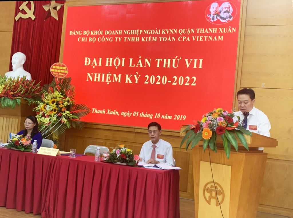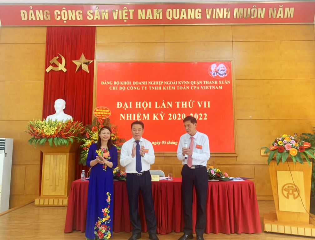 Tham dự và chỉ đạo Đại hội có các đồng chí Võ Thị Kim Ánh – QUV, Bí thư Đảng ủy Khối Doanh nghiệp ngoài KVNN quận Thanh Xuân; Đồng chí Nguyễn Phú Hà – Chủ tịch HĐTV Công ty; Đồng chí Vũ Ngọc Án – Bí thư Chi bộ khóa VI – Phó Tổng Giám đốc Công ty; Đồng chí Phạm Thị Lý – Phó Bí thư Chi bộ khóa VI – Cán bộ Văn phòng Công ty cùng 14 Đảng viên của Chi bộ CPA VIETNAM và các Đại biểu của 45 Chi bộ trực thuộc Đảng bộ Khối Doanh nghiệp ngoài KVNN quận Thanh Xuân.
