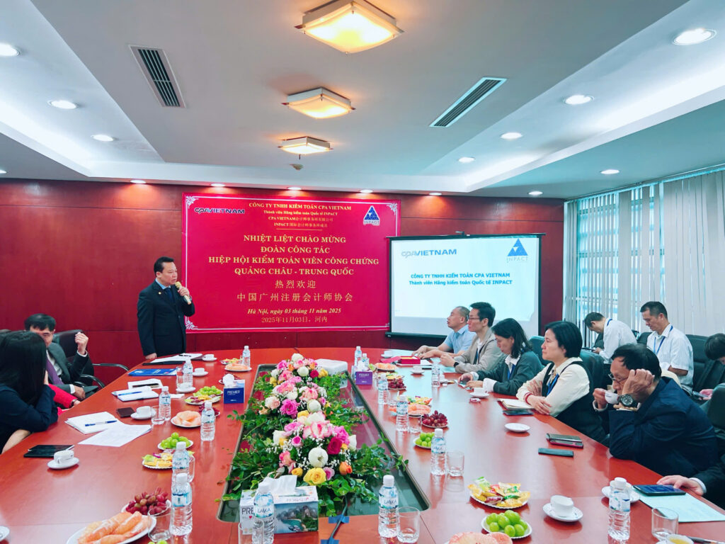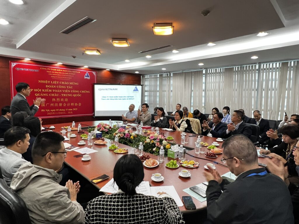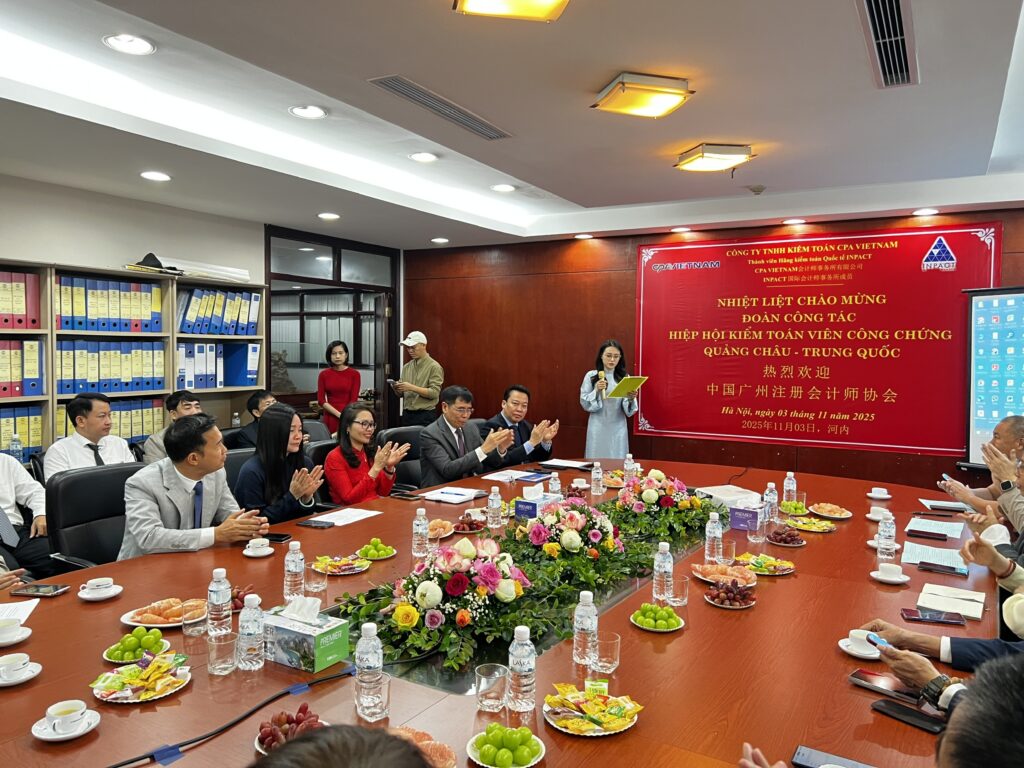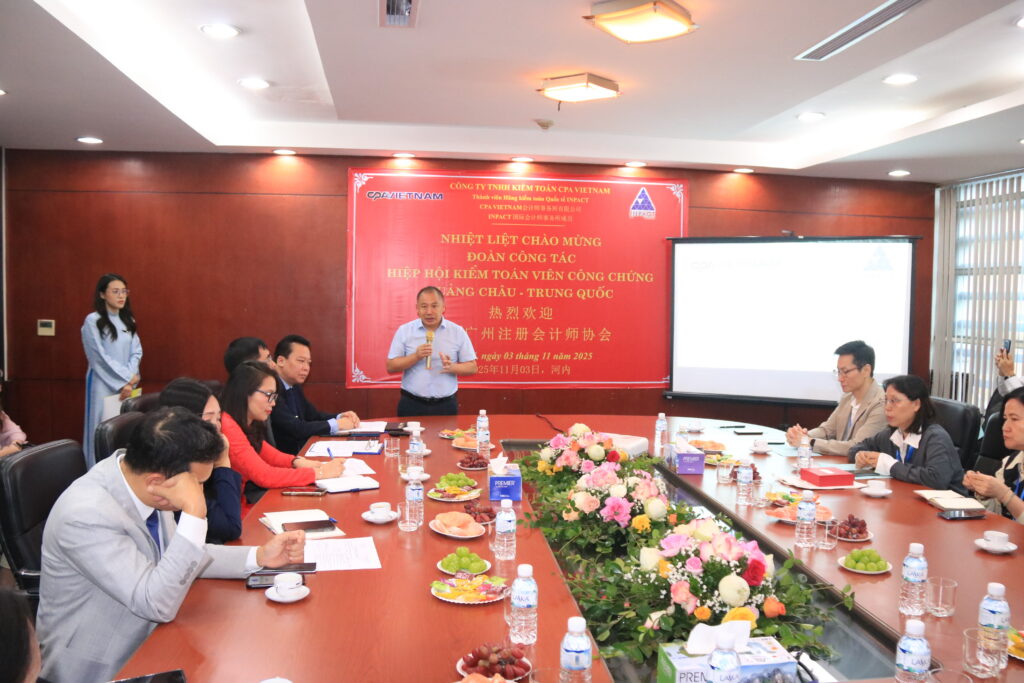 Ngày 3/11/2025, Công ty TNHH Kiểm toán CPA VIETNAM vinh dự đón tiếp Hiệp hội Kế toán viên công chứng Quảng Châu – Trung Quốc đến thăm và làm việc tại trụ sở công ty.