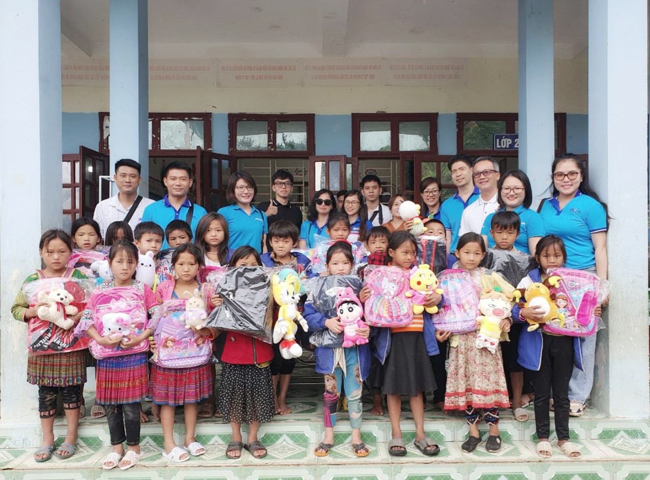Bức ảnh kỷ niệm của Đoàn thiện nguyện VACPA chụp cùng các em nhỏ Trường Tiểu học Nậm Hàng