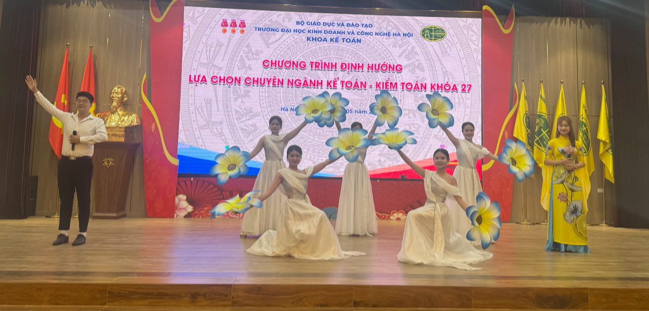 Chiều ngày 20/5/2025, Trường Đại học Kinh doanh và Công nghệ Hà Nội đã tổ chức chương trình “Định hướng nghề nghiệp” dành cho sinh viên khóa 27 ngành Kế toán. Đây là hoạt động ý nghĩa nhằm hỗ trợ sinh viên hiểu rõ hơn về các chuyên ngành, từ đó đưa ra lựa chọn nghề nghiệp phù hợp với năng lực và định hướng cá nhân.