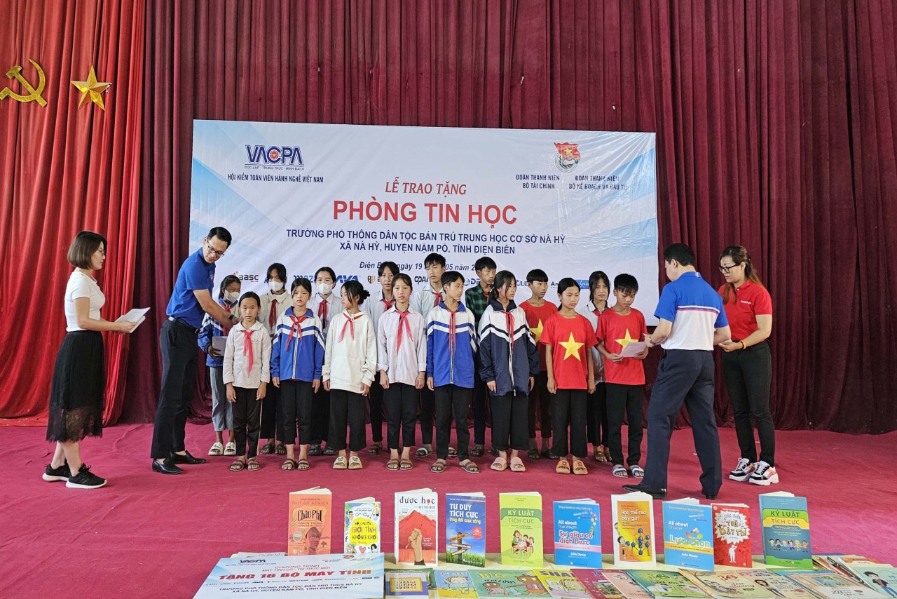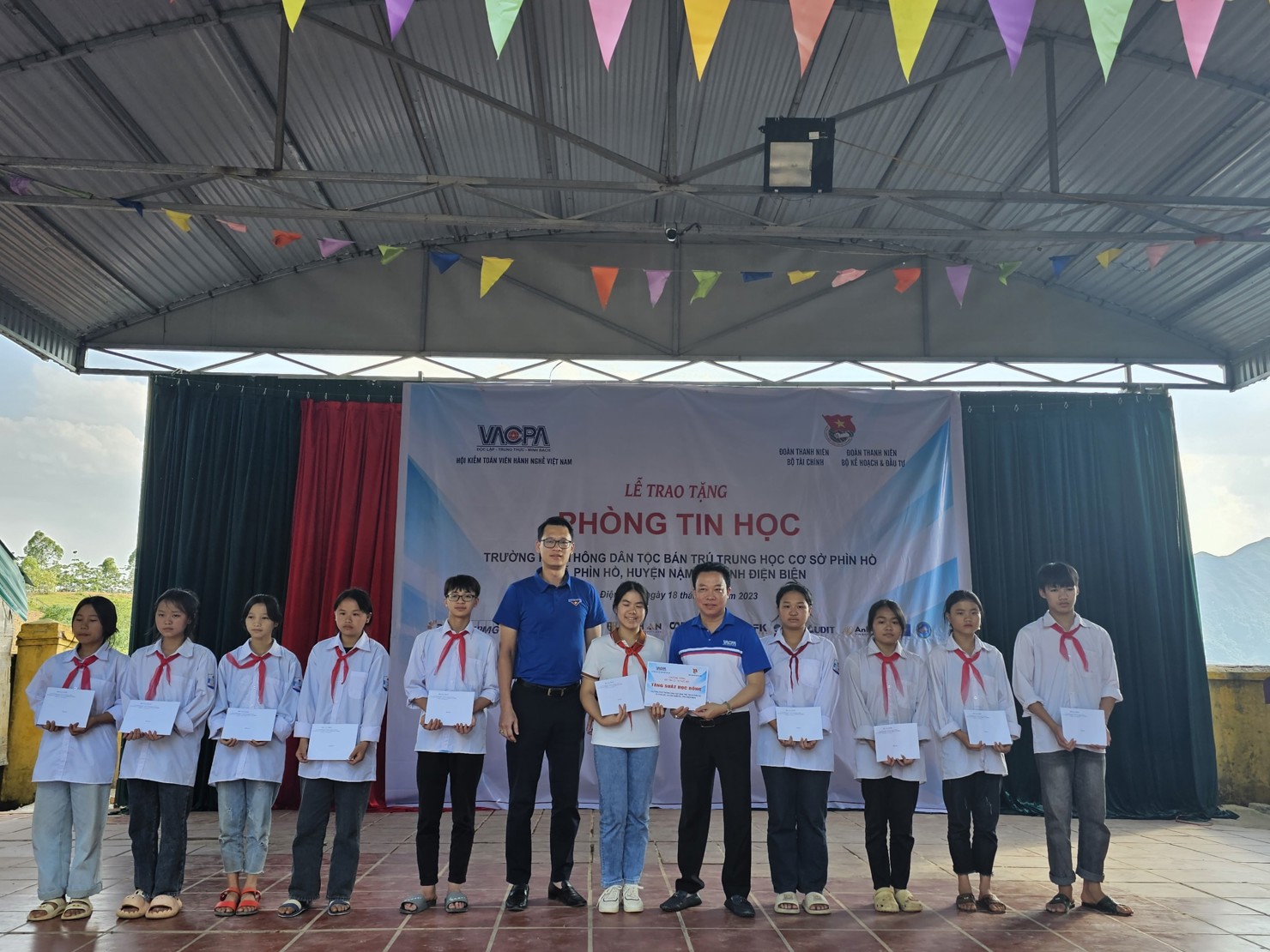 Năm 2023 là năm thứ 6, CPA VIETNAM đồng hành cùng VACPA tiếp tục thực hiện chương trình trao tặng máy tính và các suất học bổng cho các em học sinh tại hai trường có địa bàn khóa khăn, xa xôi thuộc tỉnh Điện Biên đó là PTDT bán trú Phìn Hồ và PTDT bán trú Nà Hỳ cùng thuộc huyện Nậm Pồ do Ông Nguyễn Phú Hà – Ủy viên Ban chấp hành VACPA – Chủ tịch HĐTV, Tổng giám đốc Công ty Kiểm toán CPA VIETNAM làm trưởng đoàn. Tham dự buổi lễ trao tặng này còn có đại diện của Phòng Giáo dục và đào tạo huyện Nậm Pồ, các cơ quan, đơn vị của xã Phìn Hồ/xã Nà Hỳ tỉnh Điện Biên.