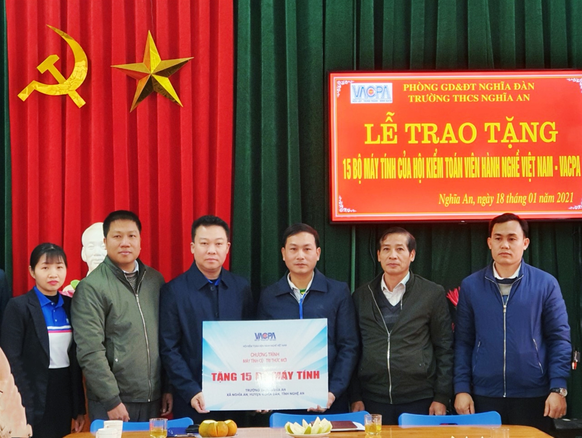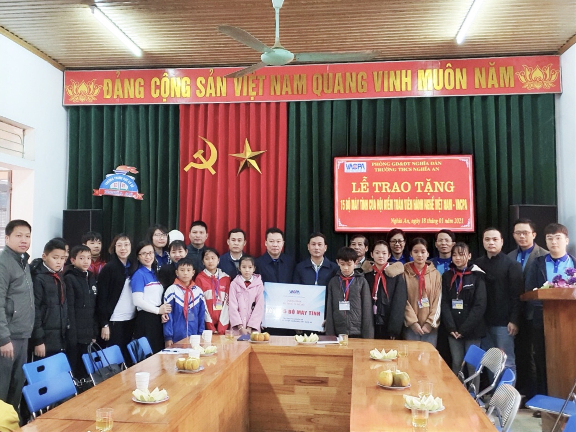 Tại buổi lễ trao tặng, có sự tham dự của Phòng Giáo dục Đào tạo huyện Nghĩa Đàn, UBND huyện Nghĩa Đàn, Hiệu trưởng Trường THCS Nghĩa An, đại diện Hội viên tổ chức và cán bộ văn phòng VACPA.