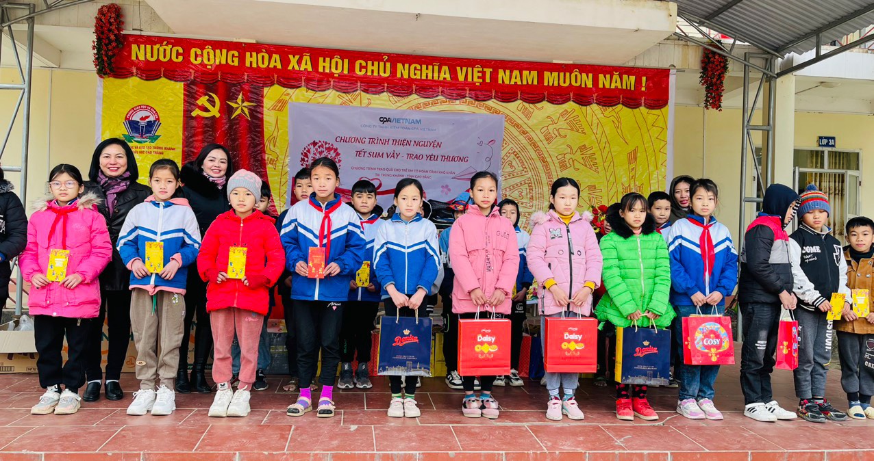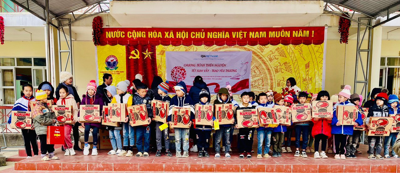Đồng cảm với những hoàn cảnh khó khăn của các em học sinh ở những địa bàn miền núi xa xôi, những mầm non tương lai của đất nước nhưng lại chưa thể có đủ điều kiện để tiếp cận với nền tri thức mới. Công ty Kiểm toán CPA VIETNAM đã tổ chức Chương trình thiện nguyện “Tết sum vầy – trao yêu thương” để mang tới các em nhỏ và đồng bào vùng cao những món quà trong dịp Tết đến xuân về, để bà con được đón một cái Tết đủ đầy và ấm no hơn, đặc biệt là sự ấm áp được truyền giữa những trái tim đến trái tim!