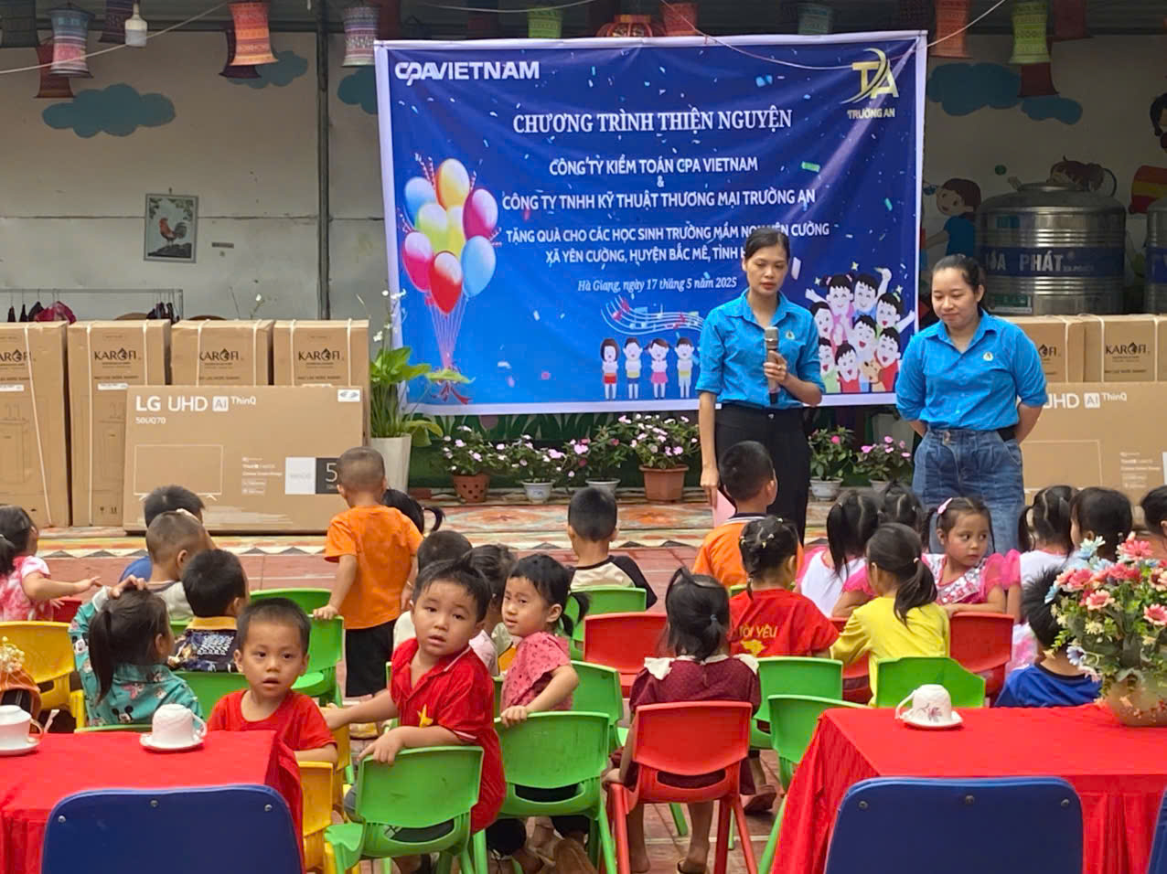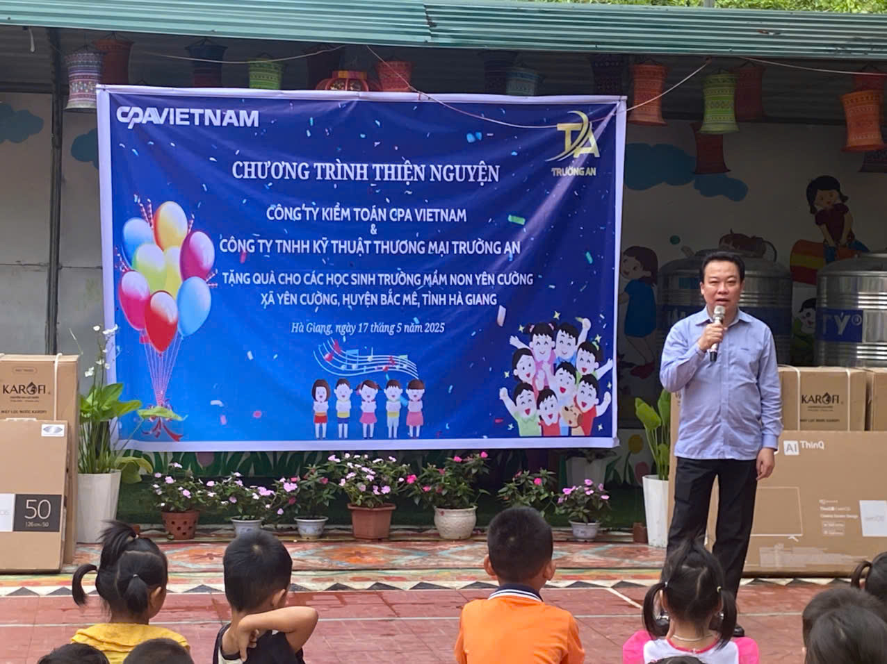 Ngày 17/05/2025 vừa qua, Công ty Kiểm toán CPA VIETNAM phối hợp cùng Công ty TNHH Kỹ thuật Thương mại Trường An đã tổ chức chương trình thiện nguyện trao quà cho các em học sinh Trường Mầm non Yên Cường, xã Yên Cường, huyện Bắc Mê, tỉnh Hà Giang.