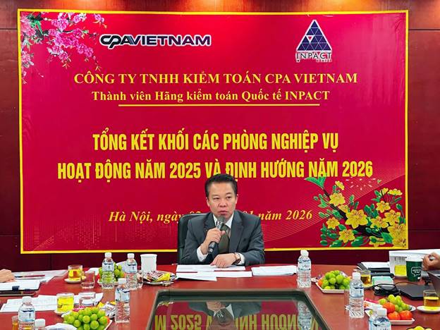 Ngày 02/01/2026, Công ty TNHH Kiểm toán CPA VIETNAM đã tổ chức Hội nghị Tổng kết hoạt động năm 2025 và triển khai định hướng, kế hoạch hoạt động năm 2026. Hội nghị là sự kiện quan trọng nhằm đánh giá toàn diện kết quả hoạt động của các phòng, chi nhánh trong năm vừa qua, đồng thời xác định mục tiêu, phương hướng phát triển cho năm mới.