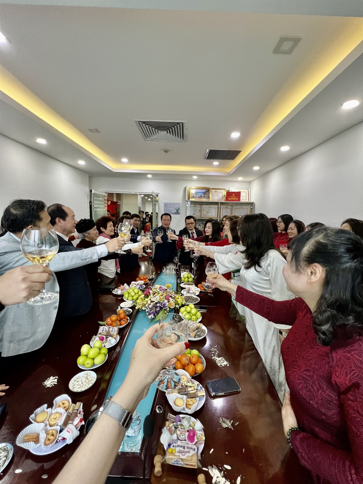 Mở đầu buổi tiệc, Chủ tịch HĐTV Nguyễn Phú Hà gửi lời chúc mừng năm mới đến toàn thể cán bộ nhân viên, chúc cho một năm làm việc suôn sẻ và nhiều thành tựu. Trong không gian ấm cúng, mọi người cùng nhau nâng ly chúc mừng, đánh dấu một khởi đầu mới tràn đầy năng lượng.