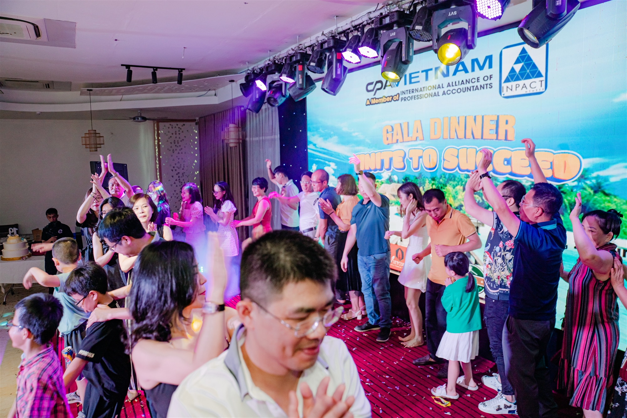 Dù đã mệt nhoài với hoạt động Team-building buổi chiều, nhưng đến chương trình Gala Sinh nhật CPA VIETNAM 19 vào tối cùng ngày, toàn thể BLĐ và nhân viên như vẫn tràn đầy năng lượng. Mở đầu chương trình là các phần luôn không thể thiếu của Lễ sinh nhật với phát biểu khai mạc của Chủ tịch HĐTV, Tổng giám đốc CPA VIETNAM – Ông Nguyễn Phú Hà; phần cắt bánh sinh nhật mừng CPA VIETNAM tròn 19 tuổi;