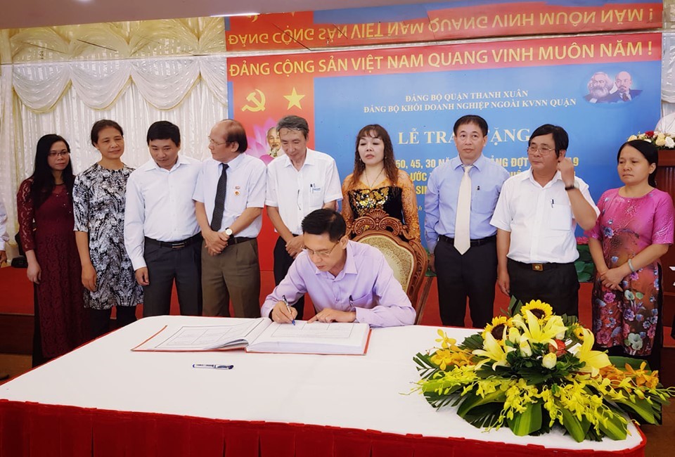 Ông Vũ Ngọc Án – Bí thứ Chi bộ Công ty TNHH Kiểm toán CPA VIETNAM ký kết giao ước thi đua thực hiện chuyên đề năm 2019 trong toàn Đảng bộ Khối doanh nghiệp Quận Thanh Xuân.