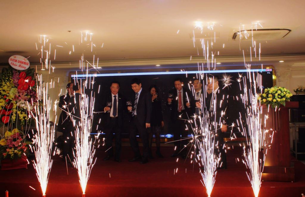 Tiếp theo là giờ phút khai tiệc đầy trang trọng. Chủ tịch HĐTV, Ban Lãnh đạo Công ty TNHH Kiểm toán CPA VIETNAM và Chủ tịch HĐQT Công ty Cổ phần Chứng khoán EVEREST cùng lên sân khấu khui Sâm panh và hô vang giây phút chào năm mới.