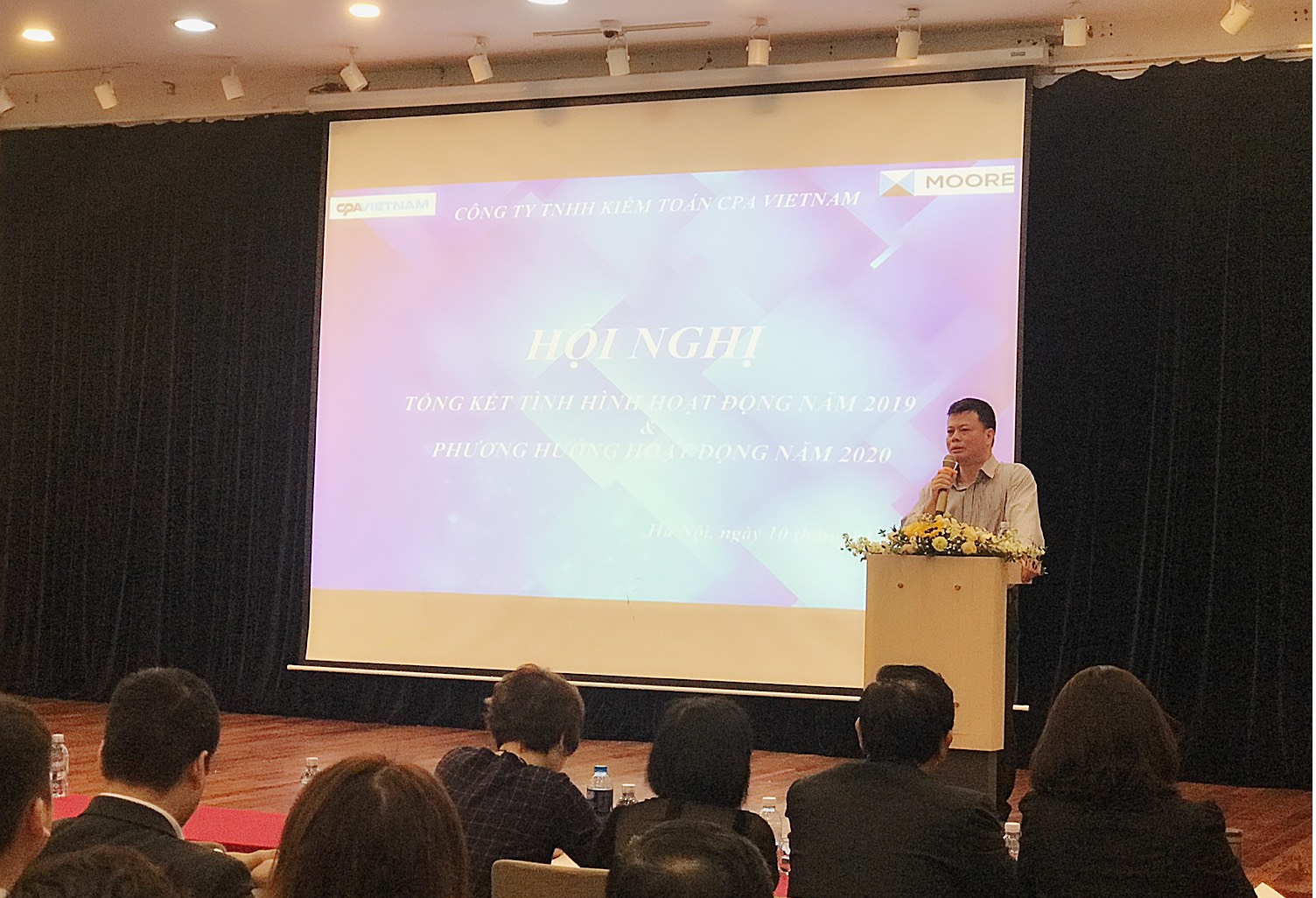 Ngày 10/01/2020, tại trụ sở chính Hà Nội, Công ty TNHH Kiểm toán CPA VIETNAM đã long trọng tổ chức Lễ tổng kết tình hình hoạt động năm 2019 và đưa ra phương hướng hoạt động năm 2020. Tới dự buổi lễ này có sự góp mặt của Ban lãnh đạo, đại diện các Chi nhánh, Văn phòng đại diện, Phòng tư vấn, toàn thể cán bộ nhân viên trong Công ty.