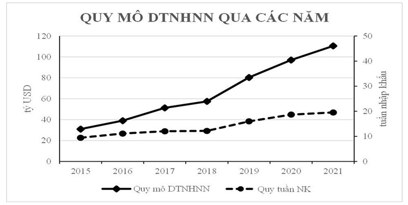 Tính đến thời điểm ngày 31/12/2021, DTNHNN đạt 109,94 tỷ USD và đến ngày 11/02/2022 là 112,83 tỷ USD, gấp 10 lần so với năm 2010 (gần 10 tỷ USD), gấp gần 4 lần so với năm 2015 (30,96 tỷ USD). Hiện Việt Nam đang đứng thứ 28/162 quốc gia trên thế giới về quy mô DTNH. Dự báo quy mô DTNHNN sẽ còn tiếp tục tăng trong thời gian tới.