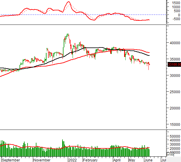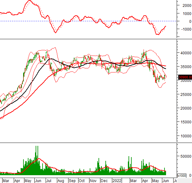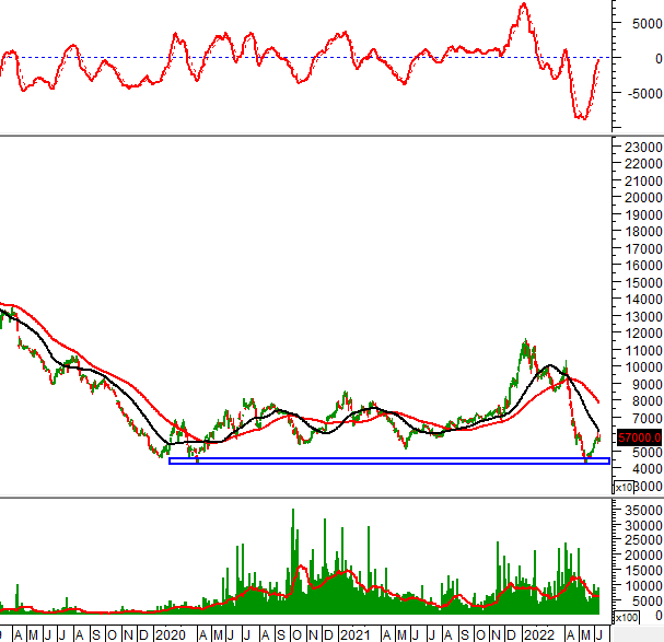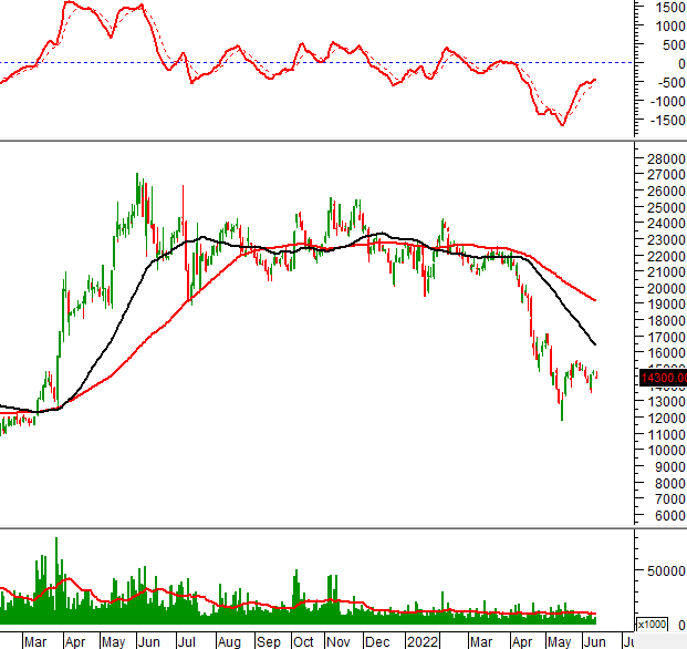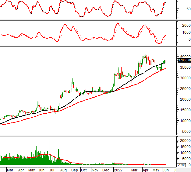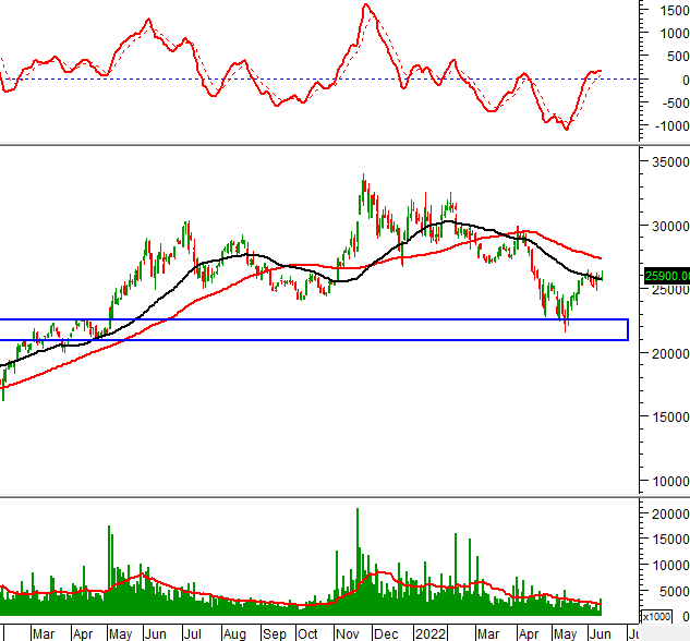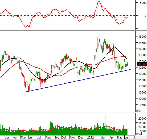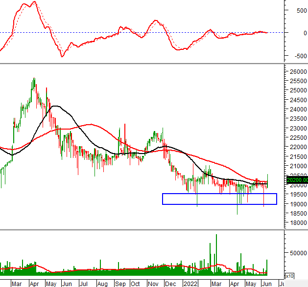 Trong phiên giao dịch ngày 10/06/2022, giá đã vượt lên trên đường SMA 50 ngày với cây nến xanh và khối lượng tăng mạnh.