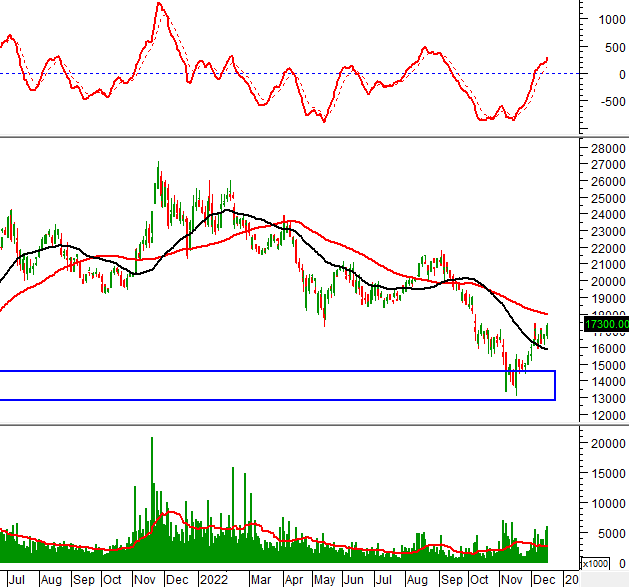 Trong phiên giao dịch ngày 16/12/2022, DIG hình thành mẫu hình nến White Marubozu cho thấy tâm lý lạc quan đang hiện diện.