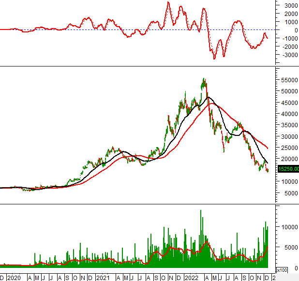 Trong phiên giao dịch ngày 16/12/2022, STB hình thành mẫu hình nến Doji và xóa bỏ nguy cơ Double Top.
