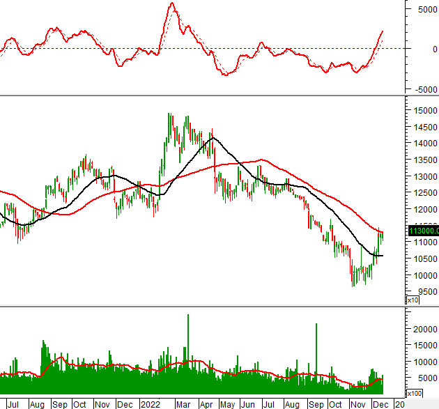 Trong phiên giao dịch ngày 16/12/2022, mẫu hình nến White Marubozu xuất hiện cho thấy khả năng tăng trưởng vẫn còn.