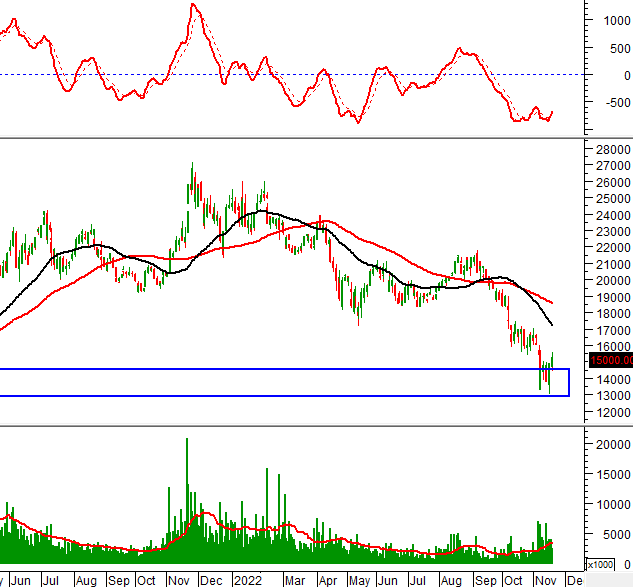 Giá nhận được sự hỗ trợ khi test lại vùng 13,000-14,500 (tương đương đáy cũ của tháng 02/2021).