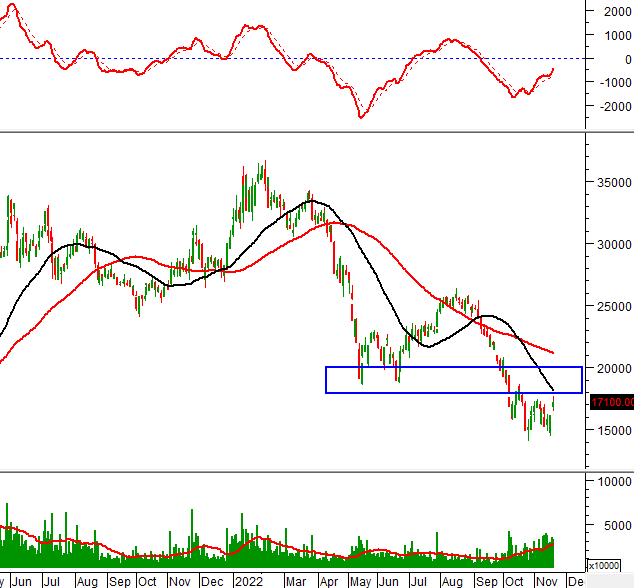 Chỉ báo MACD cho tín hiệu mua trở lại và hình thành phân kỳ giá lên sau một thời gian dài lao dốc từ đầu tháng 09/2022. Người viết kỳ vọng sự phục hồi sẽ sớm xuất hiện.