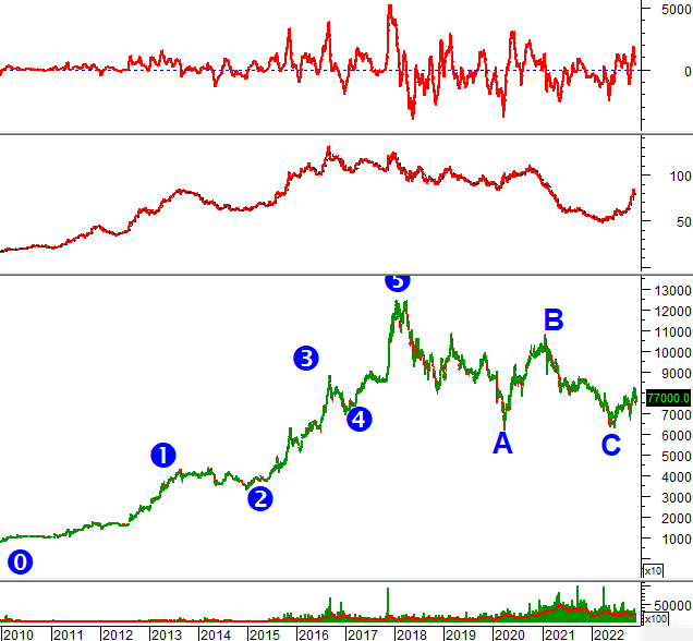 Giá cổ phiếu BCG đã điều chỉnh khá nhiều và về vùng 5,000-5,500 (tương đương đỉnh cũ đã bị vượt qua của tháng 11/2019 và tháng 06/2017).