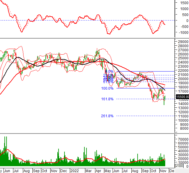 Fibonacci Retracement 161.8% (tương đương vùng 14,800-15,200) sẽ tiếp tục là hỗ trợ mạnh trong thời gian tới.