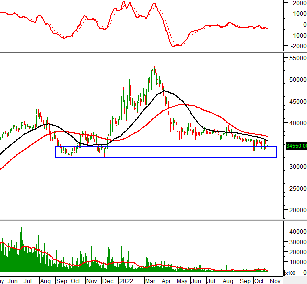 Giá cổ phiếu AGG đang test lại đáy cũ tháng 12/2021 (tương đương vùng 32,000-34,500). Nếu vùng này trụ vững thì tình hình sẽ được cải thiện tốt.
