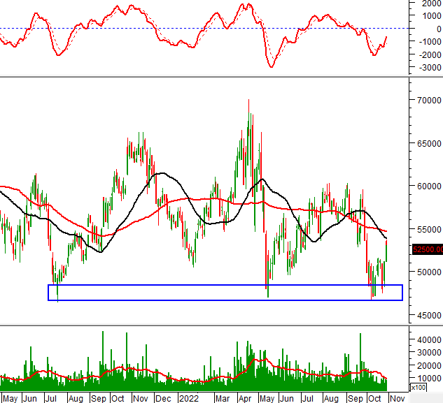 Vùng 46,500-47,500 (tương đương đáy cũ tháng 07/2021) sẽ là hỗ trợ mạnh của giá cổ phiếu BVH.
