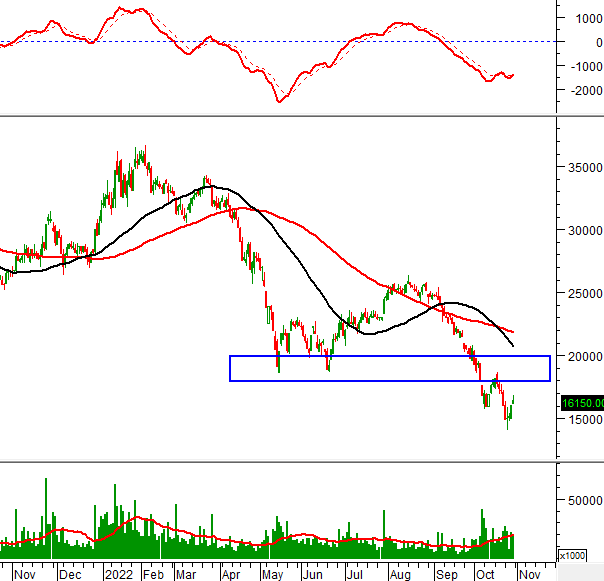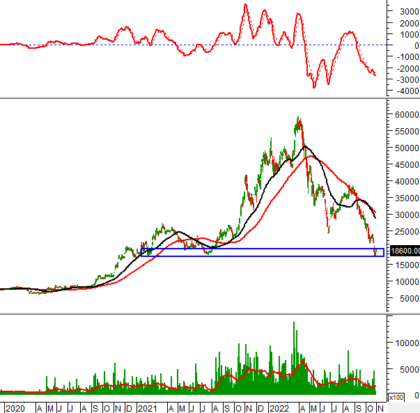 Giá nhận được sự hỗ trợ khi test lại vùng 17,000-19,500 (tương đương đáy cũ của tháng 07/2021).