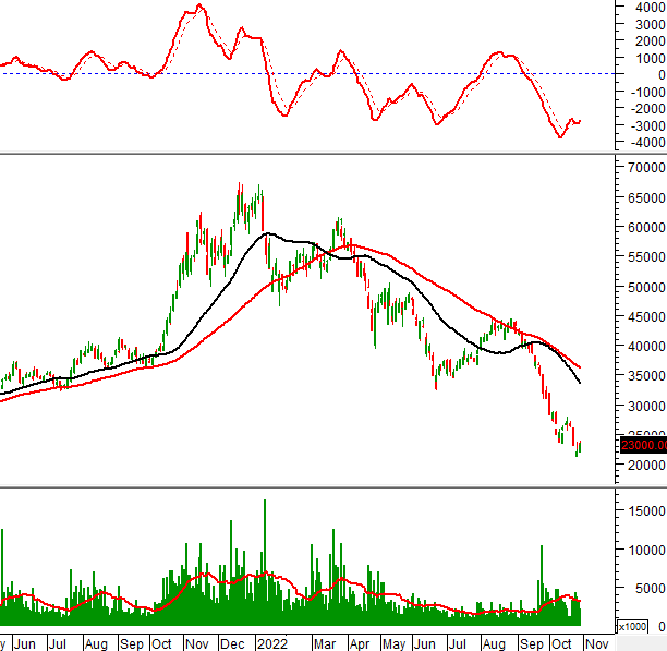 Chỉ báo MACD có dấu hiệu chững lại đà giảm sau một thời gian dài lao dốc từ đầu tháng 09/2022. Người viết kỳ vọng tín hiệu mua sẽ sớm xuất hiện.