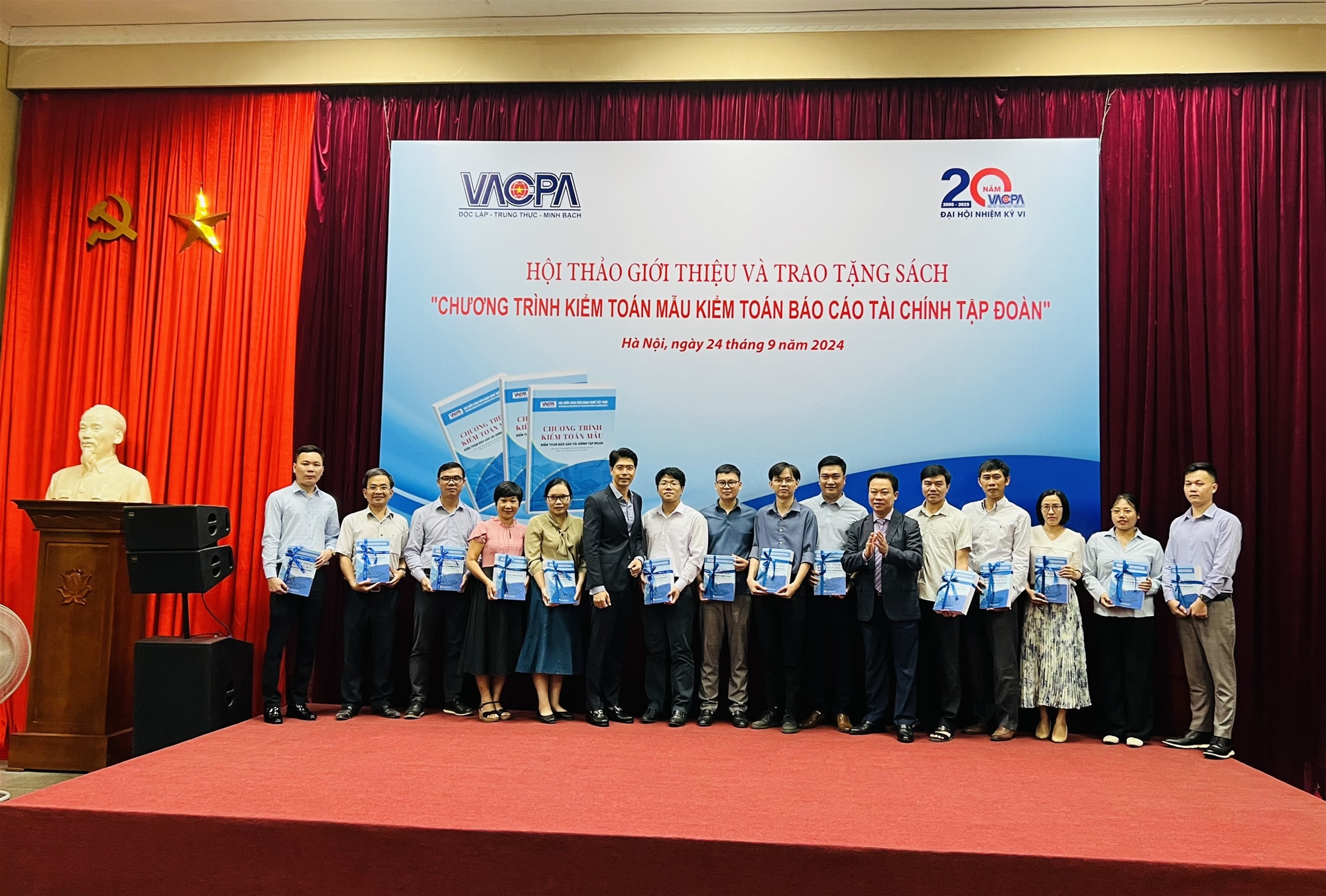 Sáng ngày 24 tháng 9 năm 2024, Hội Kiểm toán viên hành nghề Việt Nam (VACPA) đã tổ chức hội thảo giới thiệu và trao tặng sách ‘’ Chương trình Kiểm toán mẫu kiểm toán Báo cáo tài chính tập đoàn ‘’ tới các cơ quan Nhà nước, tổ chức doanh nghiệp, hội viên tổ chức, các trường đại học khu vực phía Bắc.